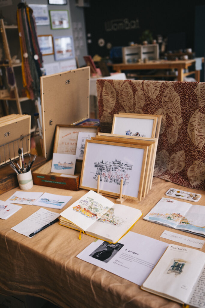 Depuis 2024, je travaille dans l’atelier partagé La Turbulente, à Chambéry, qui regroupe neuf créatrices et entrepreneuses du collectif Wom’Bat.